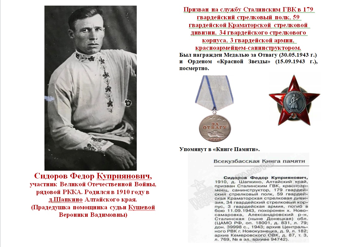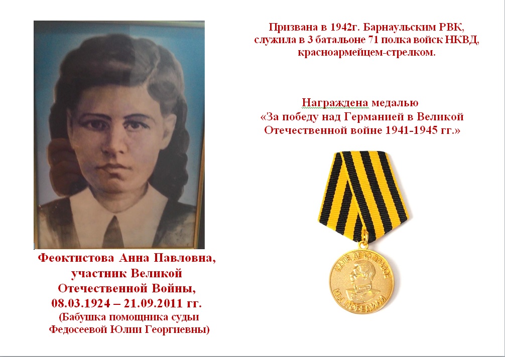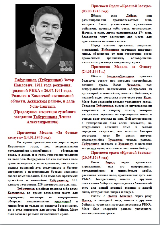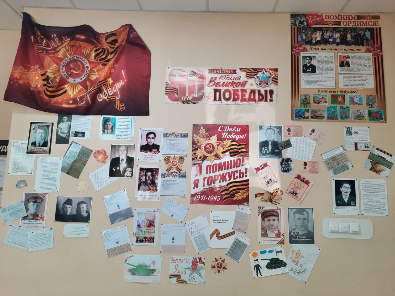 В холле Заводского районного суда г. Новокузнецка оформлен стенд, приуроченный к 80-летию Победы. На стенде представлена информация о сотрудниках суда и родственниках сотрудников суда, принимавших непосредственное участие в Великой Отечественной войне, внесших свой неоценимый вклад в Победу над фашизмом. Также стенд украшен детскими рисунками, посвященными знаменательной дате.